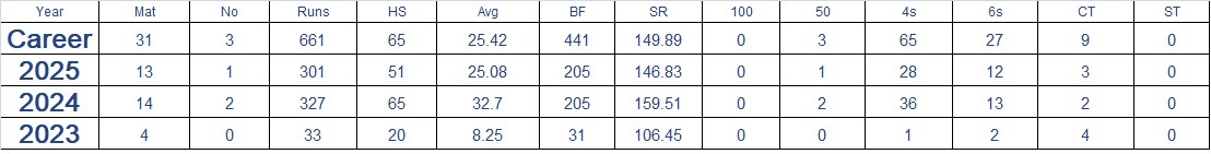 Abishek Porel stepped up as Rishabh Pant’s replacement in IPL 2023 and has since played 18 matches across two seasons, scoring 360 runs at a strike rate of over 150. Recognizing his potential, Delhi Capitals retained him as an uncapped player ahead of the TATA IPL 2025 Auction. The young wicketkeeper-batter will continue to be a crucial part of their squad.