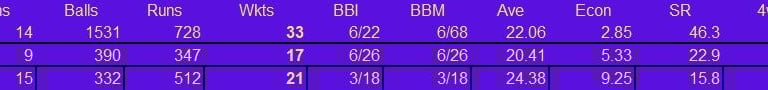Batting & Fielding Stats