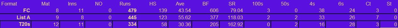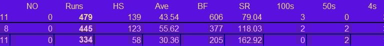 Batting & Fielding Stats