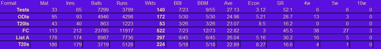 A slippery fast bowler, Matt Henry almost didn't play for New Zealand, as he underwent a major back surgery in 2012. Two years later, though, he was called up as cover during the ODI series against India, and thanks to a niggle to fellow injury-prone Hamish Bennett, Henry put the black cap on and registered the third-best figures for a New Zealand debutant in ODIs, claiming four wickets to seal New Zealand's 4-0 series triumph.