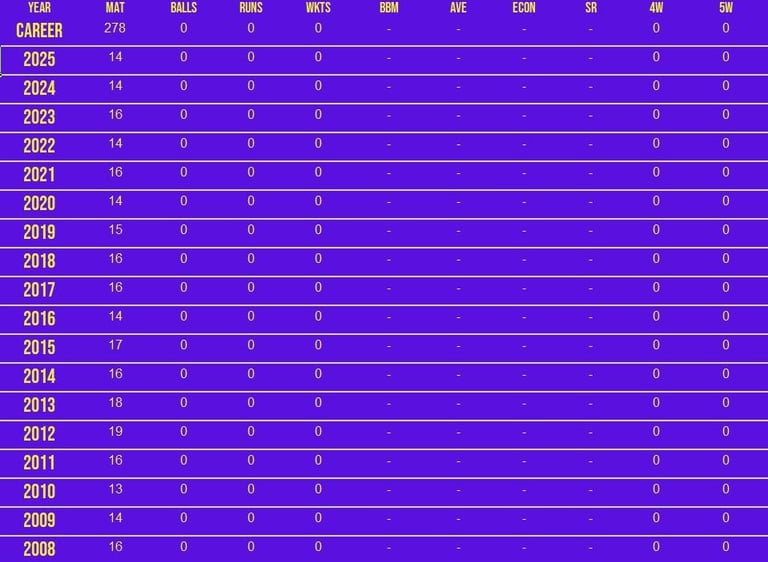 Batting & Fielding Stats