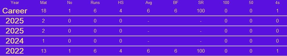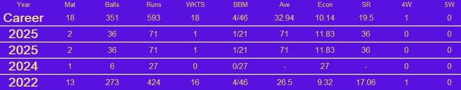 Left-arm seamer Mukesh Choudhary had a breakout season in IPL 2022, finishing as CSK’s leading wicket-taker with 16 scalps. His ability to swing the new ball and strike early made him a vital cog in the bowling attack. He was ruled out of IPL 2023 and was limited to just one game in IPL 2024. However, CSK has shown faith in him yet again, securing his services for INR 30 Lakh at the 2025 TATA IPL Auction.