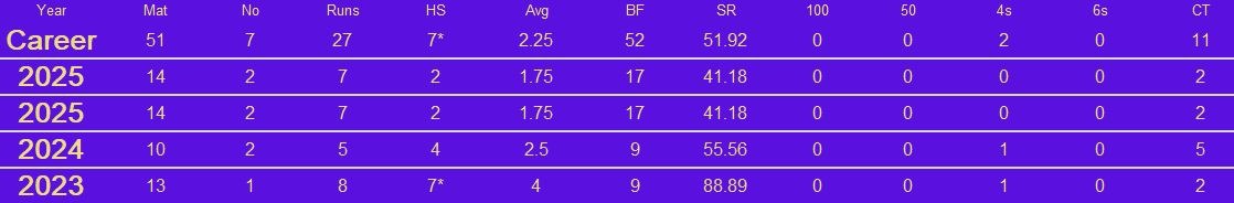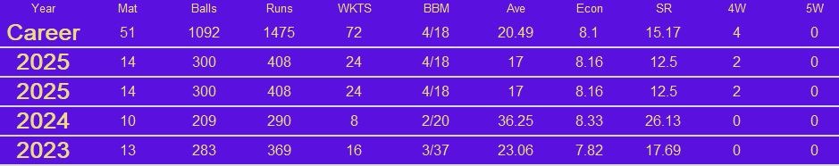 Afghanistan’s rising spin sensation Noor Ahmad made an instant impact in the IPL 2023 with 16 wickets in Gujarat Titans’ run to the final. The young left-arm wrist-spinner has been impressive at the international circuit as well having won the Player of the Match award on his T20I debut. Given his unique skill set and ability to turn the game in the middle overs, he was CSK’s most expensive buy at the 2025 TATA IPL Auction, securing a deal worth INR 10 Crore. Noor will form a potent spin trio alongside Ravindra Jadeja and Ravichandran Ashwin.