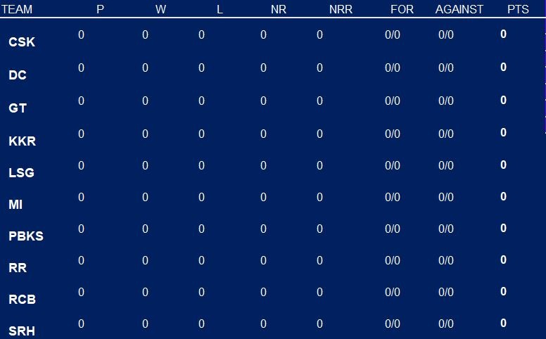 POINTS TABLE