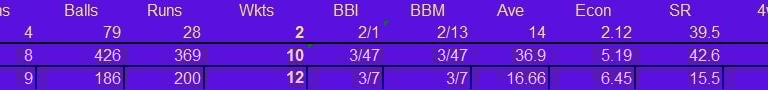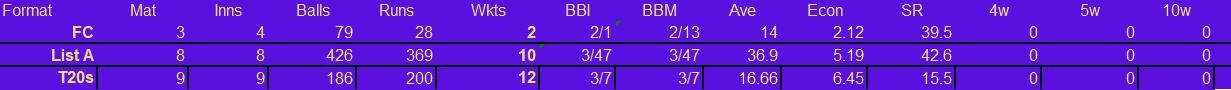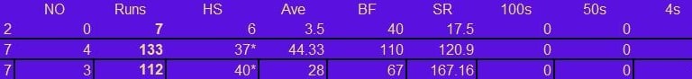 Batting & Fielding Stats