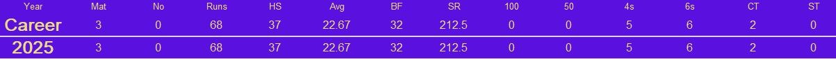 Wicketkeeper batter Urvil Patel joined the Chennai Super Kings squad as a replacement for Vansh Bedi in TATA IPL 2025. Urvil plays for Gujarat in the domestic circuit and is known for his hard-hitting abilities. He has been a part of the Gujarat Titans setup earlier in the IPL. He enjoyed a great domestic season in 2024/25 which included a record-breaking 28-ball century against Tripura in the Syed Mushtaq Ali Trophy. This was the second-fastest hundred in T20 cricket and the fastest by an Indian.